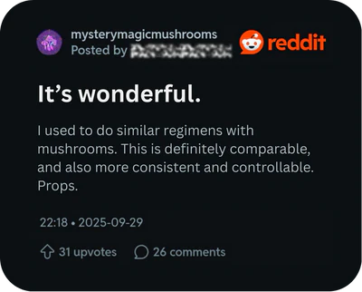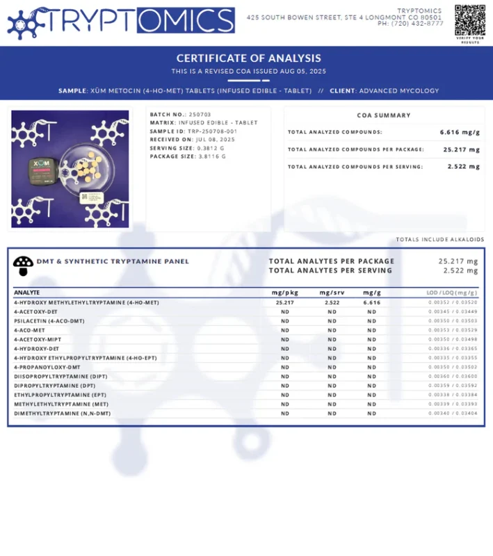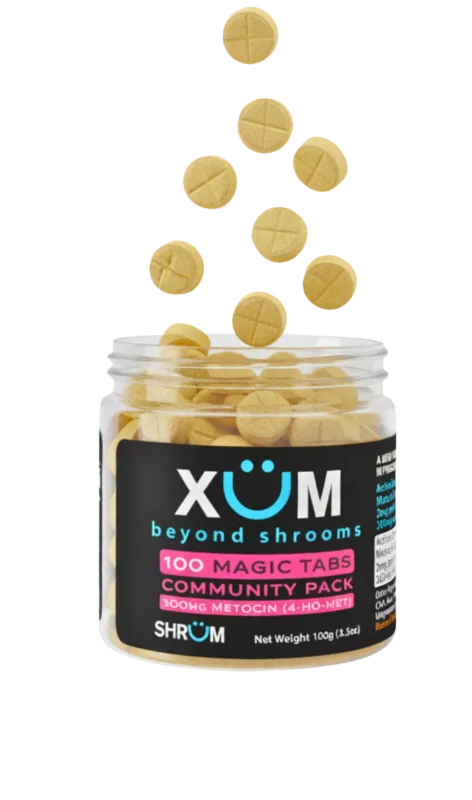Each Xüm tablet is infused with 2mg of Metocin (4-HO-MET)—a powerful, unscheduled psychedelic compound that closely mimics the effects of psilocybin (the active ingredient in magic mushrooms), but with some key improvements