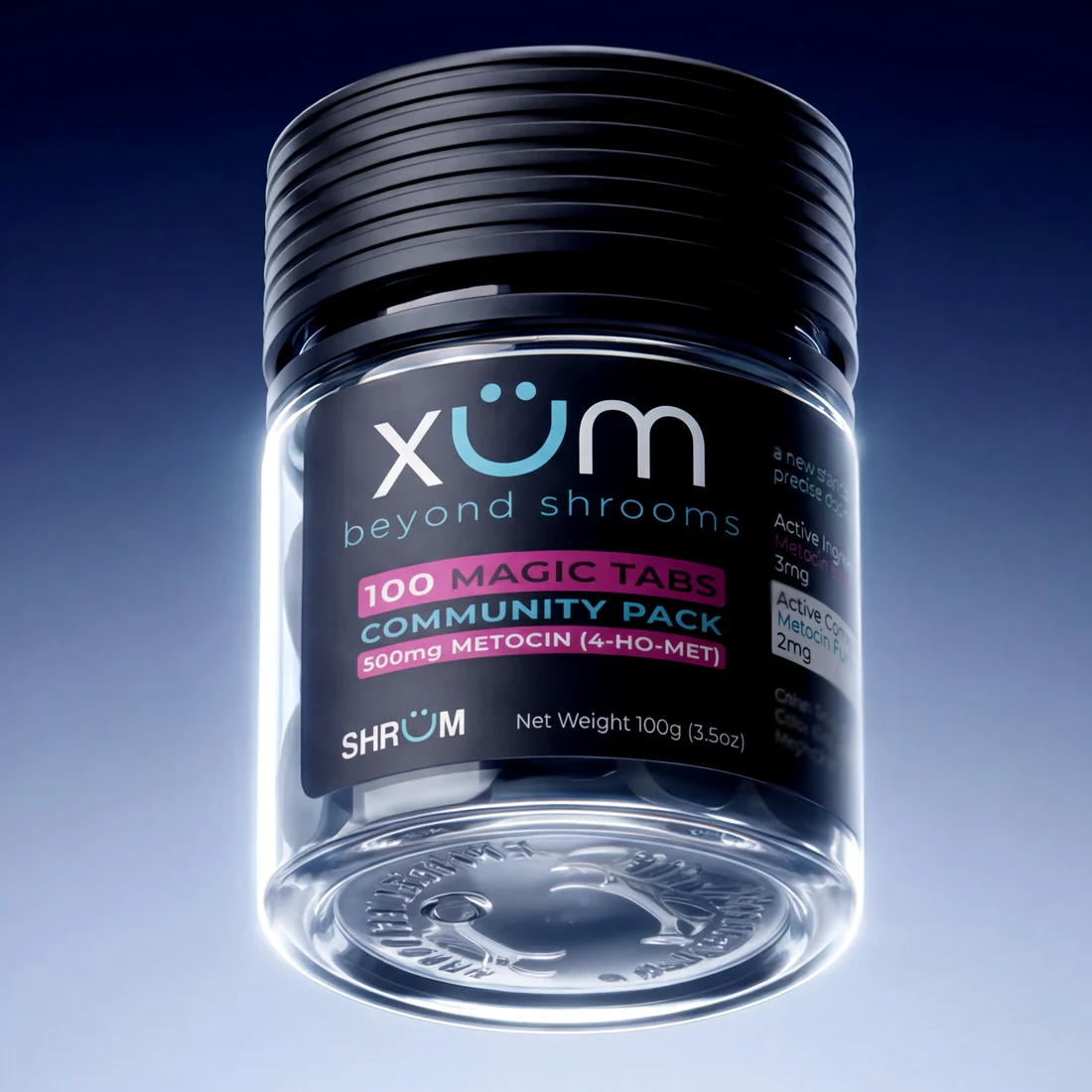 Each XÜM Community Pack jar contains 100 chewable tablets (Total jar equivalent to 50g of Shrooms) .